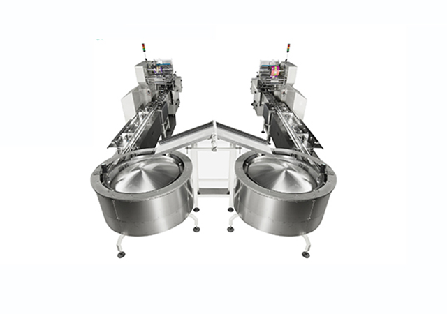 生產線上的物料輸送至圓盤內,通過旋轉將物料整理system后,完成高速包裝,生產能力300-450包/分鐘。